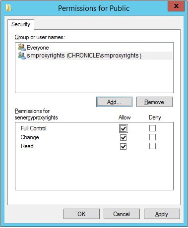 With smproxyrights selected, select the Full Control check box.