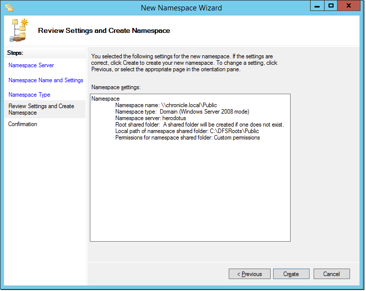 Review the settings and click Create.