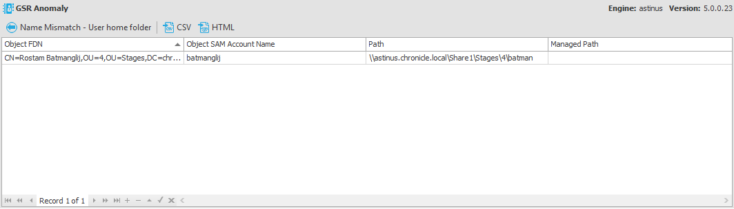 This Anomaly report indicates that the leaf path name of the respective attribute value (e.g. home folder) does not match that of the respective object’s name.