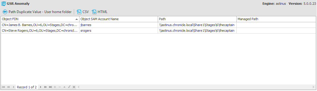 This Anomaly report indicates that two or more objects have been detected that contain the same value for the respective path attribute (e.g. home folder).