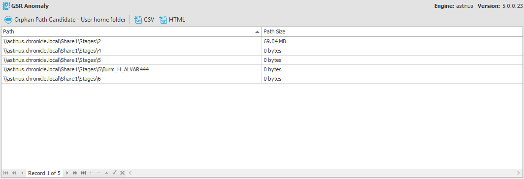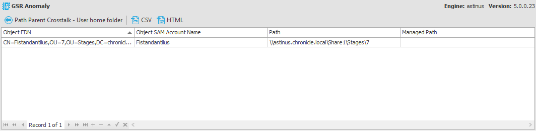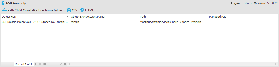This Anomaly report indicates that the object’s respective path attribute value (e.g. home folder) has been detected as being the subordinate of another object’s path attribute value (e.g. home folder).