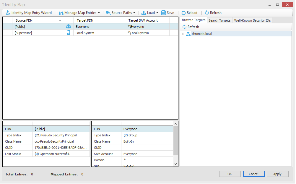 The entries are added to the identity map and you can now add target entries by following the procedures in Section 10.5.4, Adding or Modifying Target Entries to the Identity Map.