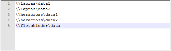 Using a text editor, create a file with UNC paths for each server and volume that you want to import, then save the file.