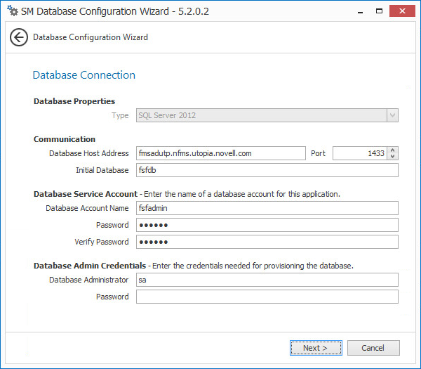 In the Password field of the Database Admin Credentials region, specify the SQL Server administrator password, then click Next.