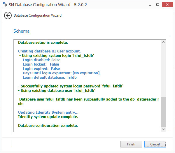 To complete the upgrade to version 5.0, you must configure the database to extend the database schema.