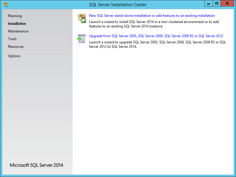 Select New SQL Server stand-alone installation or add features to an existing installation.