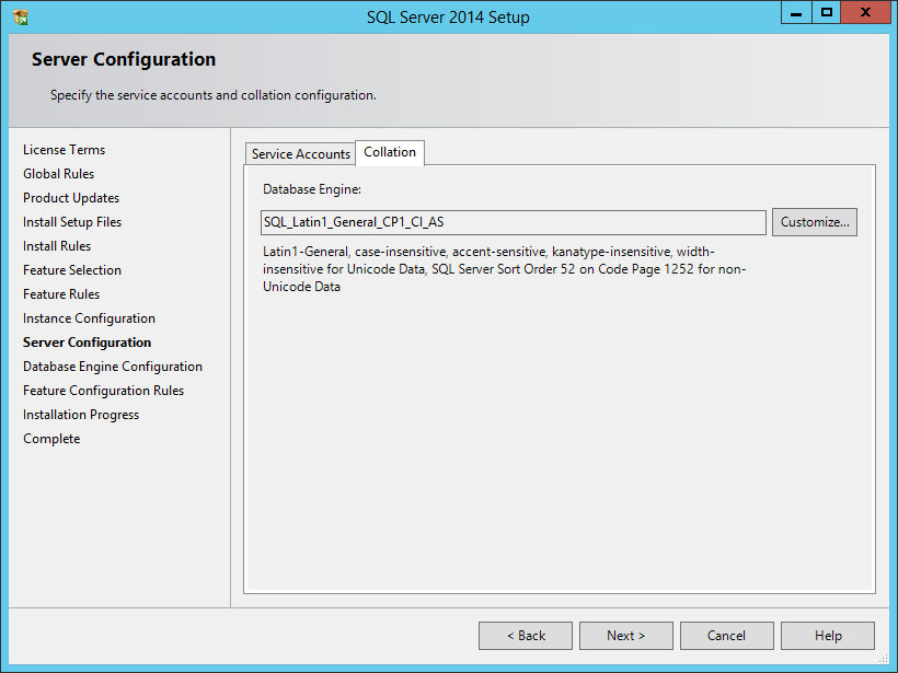 We recommend that you select a collation that aligns with the Windows locale of the server where the Engine is installed.For more information on collation and locales, refer to this Microsoft document:.