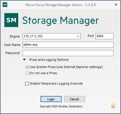 The Enable Temporary Logging Override option overrides the currently set logging option for the Admin Client, and temporarily enables debug logging. The log can be found in the %AppData%\Roaming\Micro Focus\Storage Manager\Admin folder.
