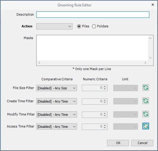 In the Grooming Rule Editor dialog box, indicate the files that Storage Manager for eDirectory will groom from the collaborative storage pertaining to this policy.
