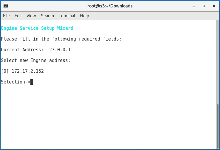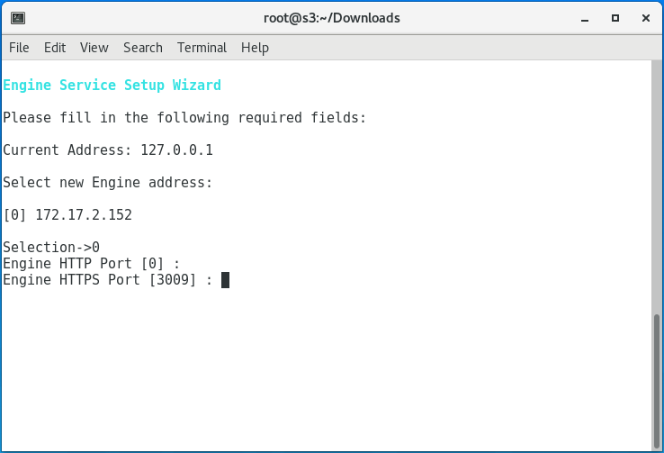 Specify the IP address of the server hosting the Engine and press Enter.