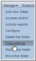 In Novell Teaming, navigate to the folder where you want to post e-mail and select the Manage > menu item.