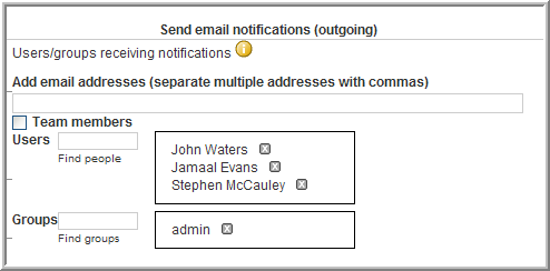 Specify who is to receive the e-mail. This can be a combination of users, groups, and arbitrary e-mail addresses.