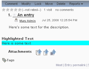 When a user creates an entry of this type, it appears as follows (note the title of the entry, comprised of two elements found on the form):