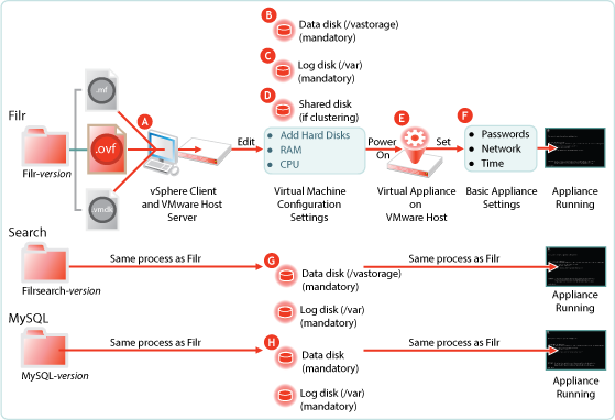 After you have obtained and extracted the appliance software, you need to deploy it on your host server, as illustrated in Figure 2-7 and Figure 2-8 and as explained in the tables that follow them.
