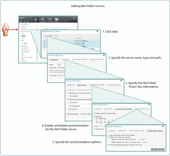 As illustrated in Figure 10-3, adding a Net Folder Server includes the following: