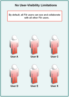 For example, after a user-visibility limitation is applied to Group A, User A can only see User B. (User B’s ability to see other users is not affected because User B is not in Group A.)