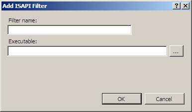 This time, specify the following information in the Add ISAPI Filter dialog box: