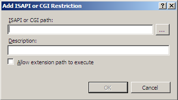 The Add ISAPI or CGI Restriction dialog box is displayed.