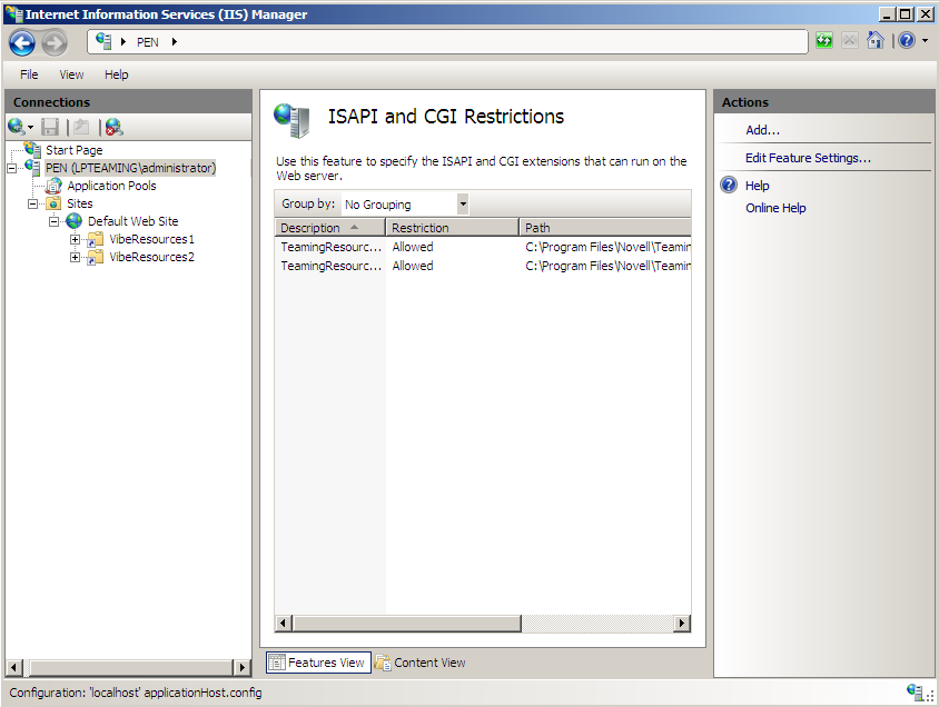 Physical path: C:\Program Files\Novell\Vibe IIS Plugin\resources2\bin