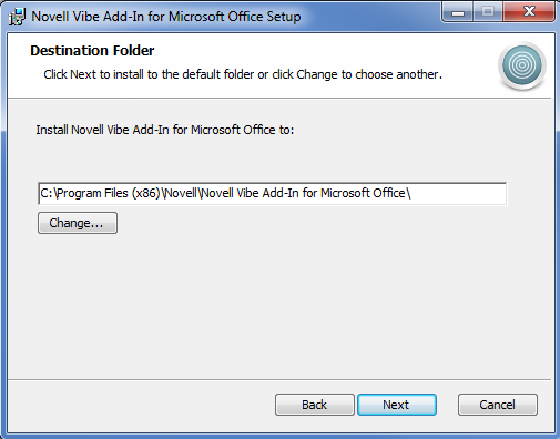 Browse to the location where you want to install the Vibe Add-in, or accept the default location, then click .