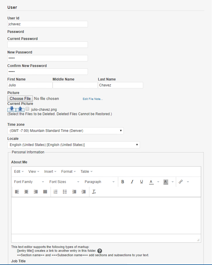 The user profile form is what a users see when they edit their user profile in Vibe. For example: