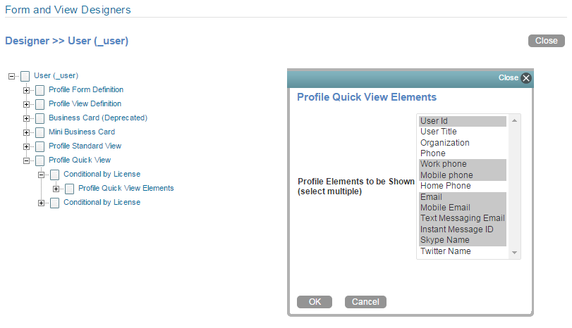 Press and hold the Ctrl key to select and deselect elements that you want to include in the Profile Quick View or exclude from the Profile Quick View.