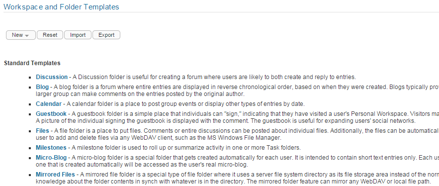 Various aspects of the Vibe interface have been redesigned and enhanced since Vibe 4. Some of these enhancements affect entries, folders, user profiles, and user workspaces. If you have made customizations to these areas of Vibe, you must reset these definitions in order to see the enhancements, as described in this section.