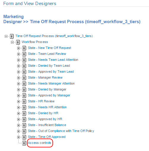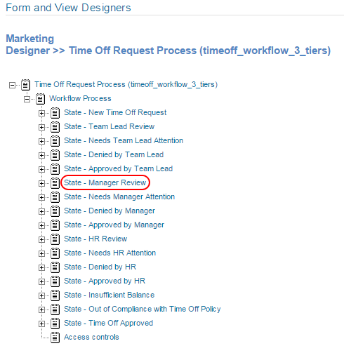 Expand Workflow Process, then click the state where you want to add the access controls.