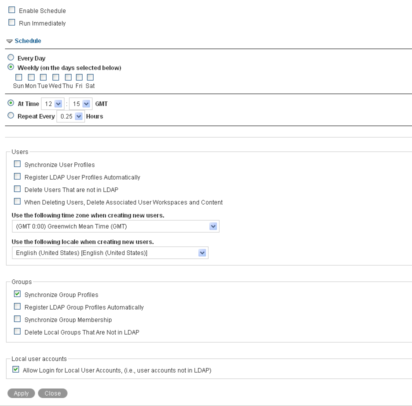 IMPORTANT:For a large Vibe site with thousands of users, the synchronization process can consume substantial server resources and can take some time to complete. Perform the initial import from the LDAP directory at a time when this processing does not conflict with other activities on the server.