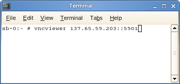 where vm_ip is the IP address of the virtual machine and # is the VNC viewer port number assigned to the virtual machine.