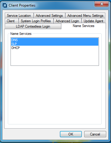 Use the Name Services property page in the Client Properties dialog box to specify which name service protocols are used to attempt to resolve names.