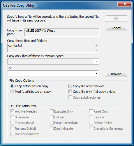 The OES Copy utility lets you copy files or folders to or from any location you have access to on the network to another network location.