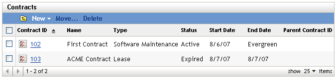 1. In ZENworks Control Center, click Asset Management > Contract Management > Contracts to display the Contracts page.