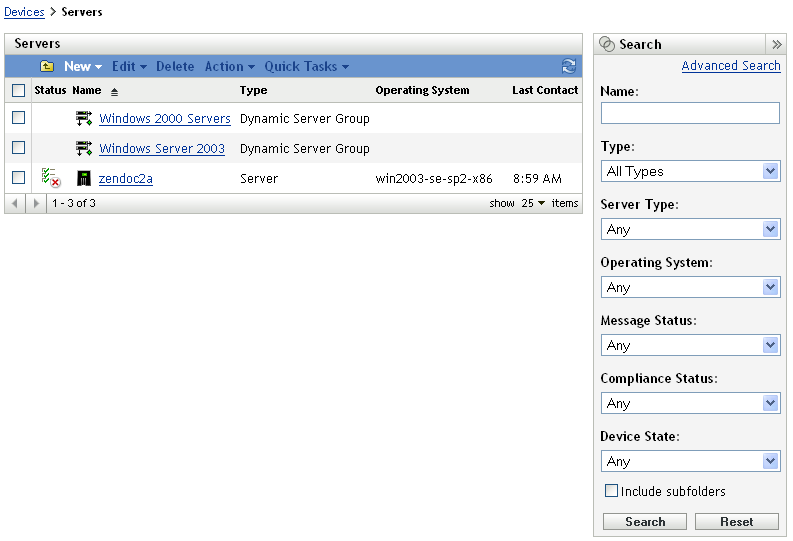 After you deploy the module, the device is added to the ZENworks database. The ZENworks Control Center displays inventoried-only devices on the Device page’s tab.