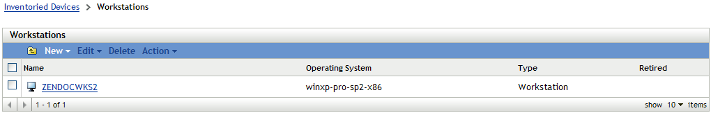 To search for only retired workstations, click the underlined link next to the folder to display the list of workstations.