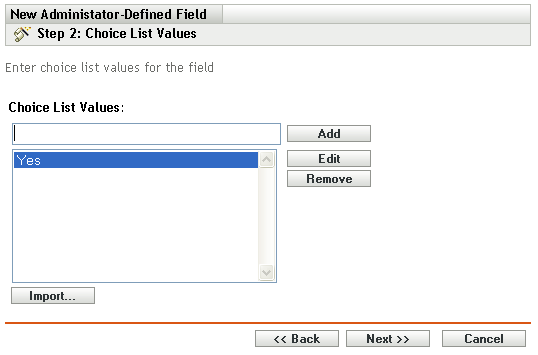 If you chose or as the in Step 4, specify a list of choice values and click .