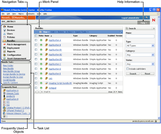 Figure 1-1 ZENworks Control Center
