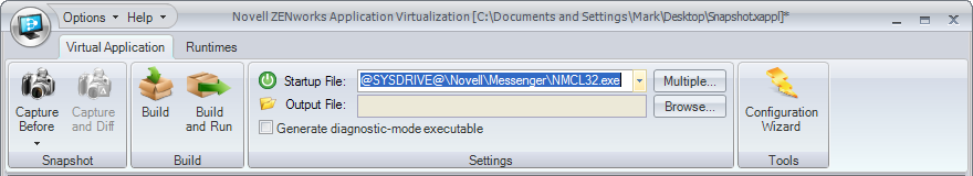 You can prepare a clean machine by uninstalling GroupWise Messenger. However, we recommend that you start the process on a machine that has only the desired Windows OS, any applicable OS service packs, and ZENworks Application Virtualization installed. Starting with a machine that includes only these items helps to ensure that your virtual application does not contain settings that might cause conflicts.