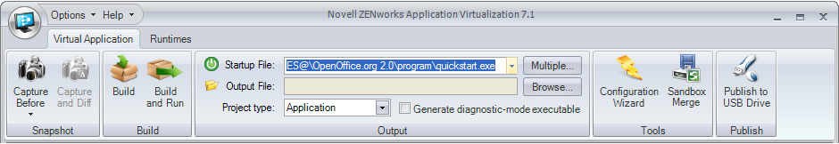 If you want to use the OpenOffice Quickstarter, skip to Step 12. If you want the virtual application executable file to expose multiple applications, continue with Step 11.