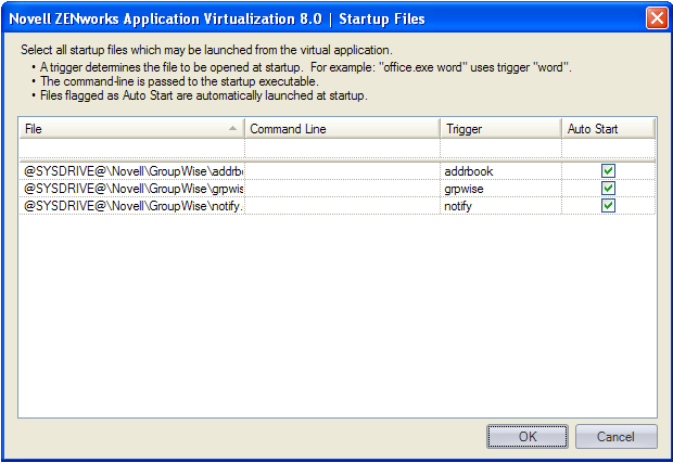 Click the check box next to the desired files so that they always automatically launched on virtual application startup, then click .