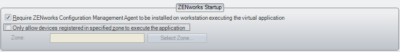 2. Select the Require ZENworks Configuration Management Agent to be installed on workstation executing the virtual application check box.
