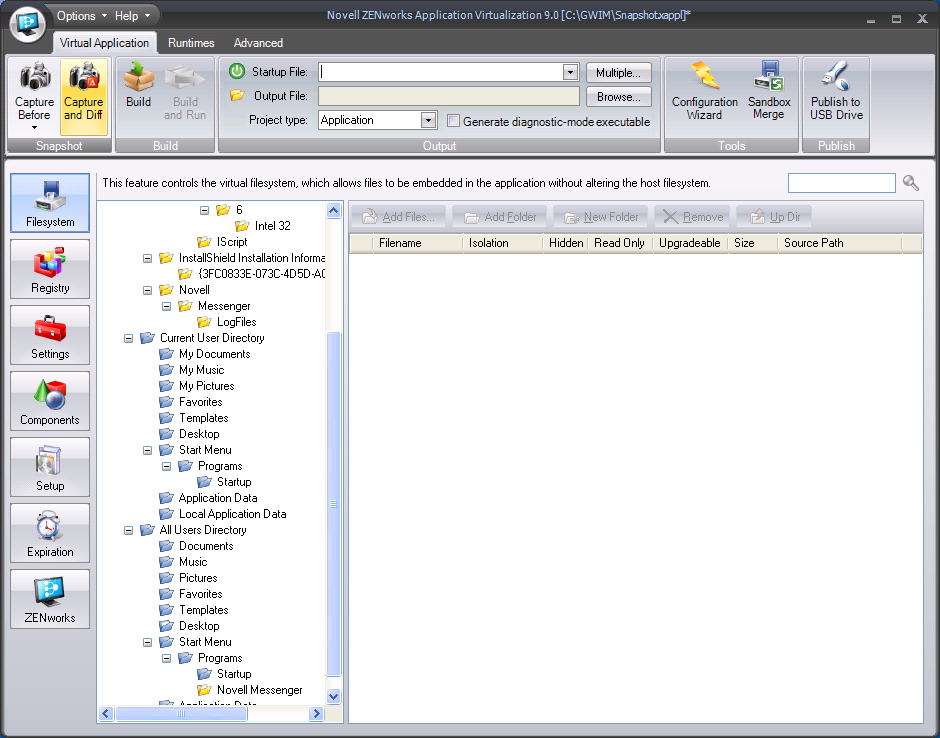(Optional) Click the button on the left side of the ZENworks Application Virtualization console to review the file system and registry entries.
