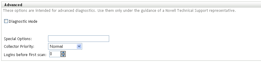 WARNING:These options are intended for advanced diagnostics. Use them only under the guidance of a Novell Support representative.
