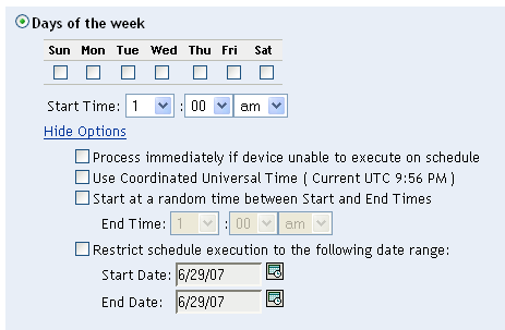 6. Specify a start time, and if you selected Start at a random time between Start Time and End Time, specify an end time.