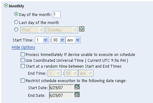 For configuring the schedule type, perform steps from Step 3 through Step 3 listed in Section 4.3.1, Scheduling the Deployment of the Collection Data Form for the Management Zone.