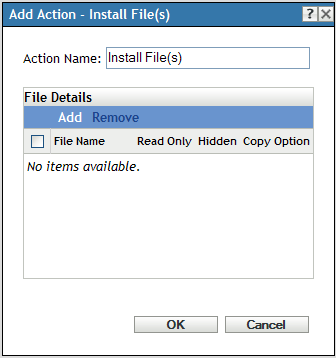 In the Action- Install dialog box, click to display the Select Files dialog box.