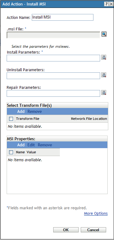 Figure E-16 Action - Install MSI Dialog Box