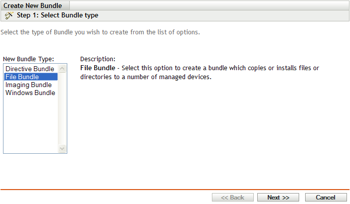 Bundle Name: Provide a name for the bundle. The bundle name must be different than the name of any other item (bundle, group, folder, and so forth) that resides in the same folder. The name you provide displays in ZENworks Control Center and the ZENworks Adaptive Agent (on managed devices).
