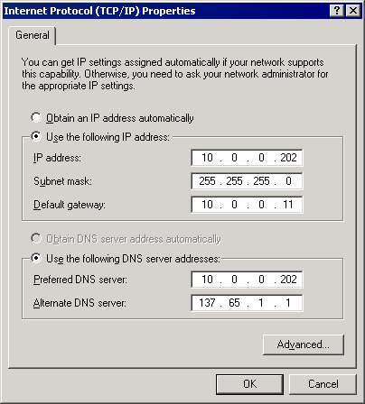 Install Windows 2000 Server to your selected server hardware, using the following specifications for the first boot: