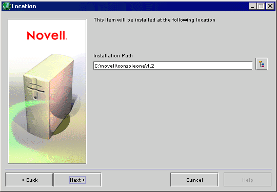 In the Location window, change the default installation path to D:\NOVELL\CONSOLEONE\1.2 > click Next.